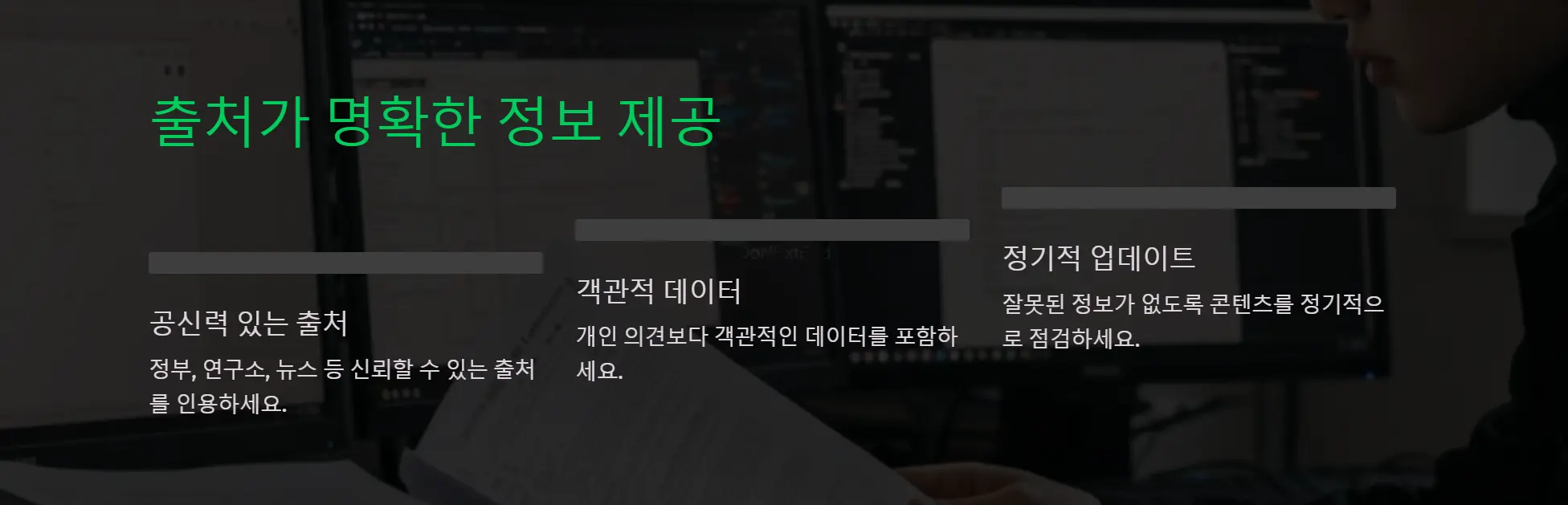 ✔ 잘못된 정보가 포함되지 않도록 정기적인 콘텐츠 업데이트