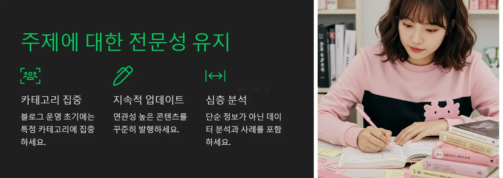1️⃣ 주제별 전문성 유지 → 특정 카테고리에 집중하여 콘텐츠 작성