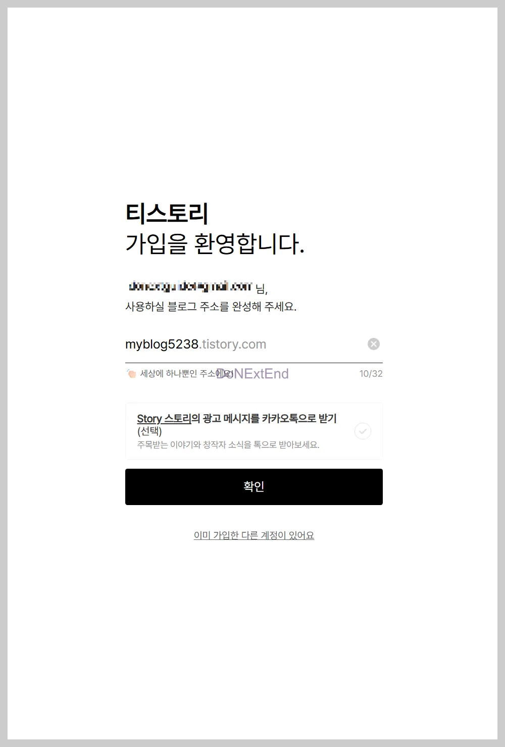 - 주소 입력 후, 확인 버튼을 누르면 블로그 개설이 완료됩니다.