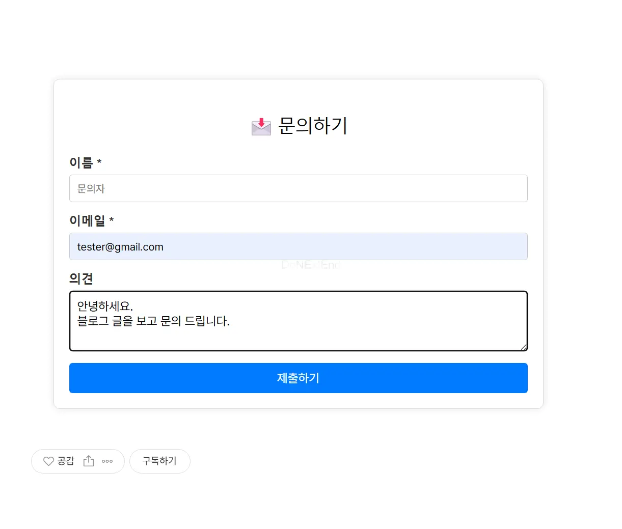 이제 방문자들은 블로그를 떠나지 않고도 문의를 보낼 수 있으며, 제출된 내용은 자동으로 구글 스프레드시트에 저장된다.