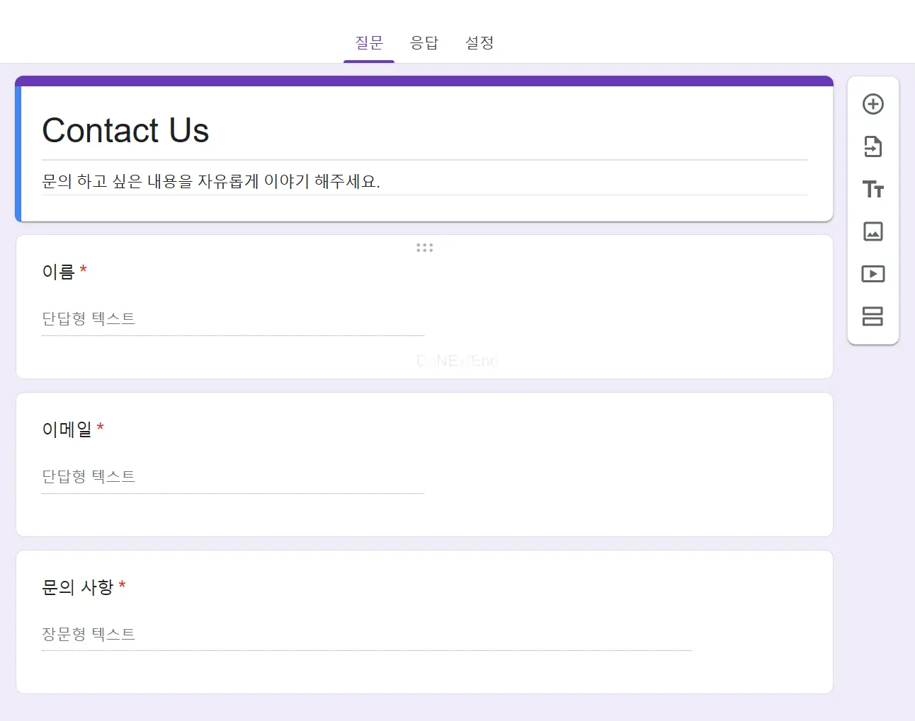 - 이메일 (단답형, 이메일 형식 제한 적용)